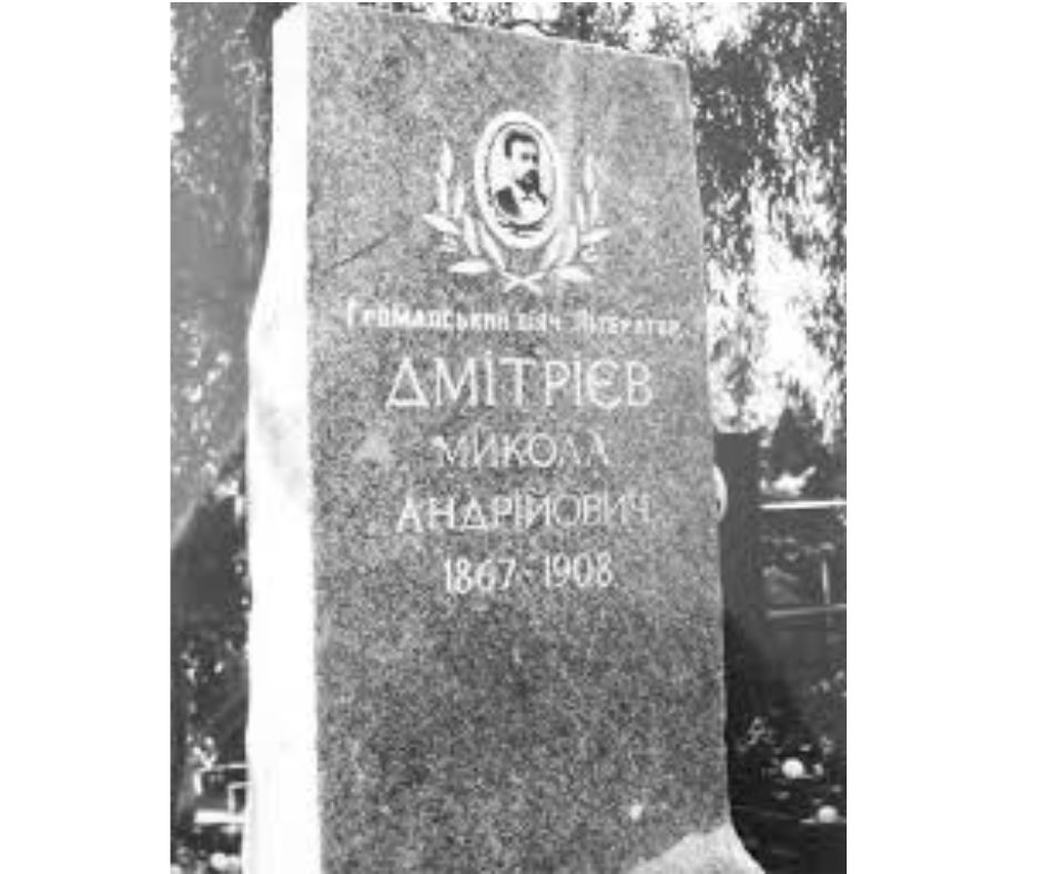 The entire city of Poltava accompanied him on his final journey. Contemporaries claimed that almost the entire city gathered at the funeral service near Stritynska Church. Mykola Dmytriiev was buried in the old city cemetery. Panas Myrnyi laid a wreath on his friend's grave with an inscription on the ribbon: "To the tireless worshipper of truth from his orphaned brother." In 1910, Hanna, Mykola Dmytriiev's widow, commissioned Vasyl Krychevskyi to create a tombstone for her husband – a monument in the form of a chapel made of grey granite. In the 1960s, a park was laid out on the site of the Old Poltava Cemetery and the Ltava factory was built. Dmytriiev's ashes were transferred to another cemetery, and only the majestic, ornate "rosary" pedestal remained of Krychevskyi's masterpiece. To protect the bust from theft and destruction, Dmytriev's family transferred it to the Panas Mirny Literary and Memorial Museum in Poltava, where it remains to this day.