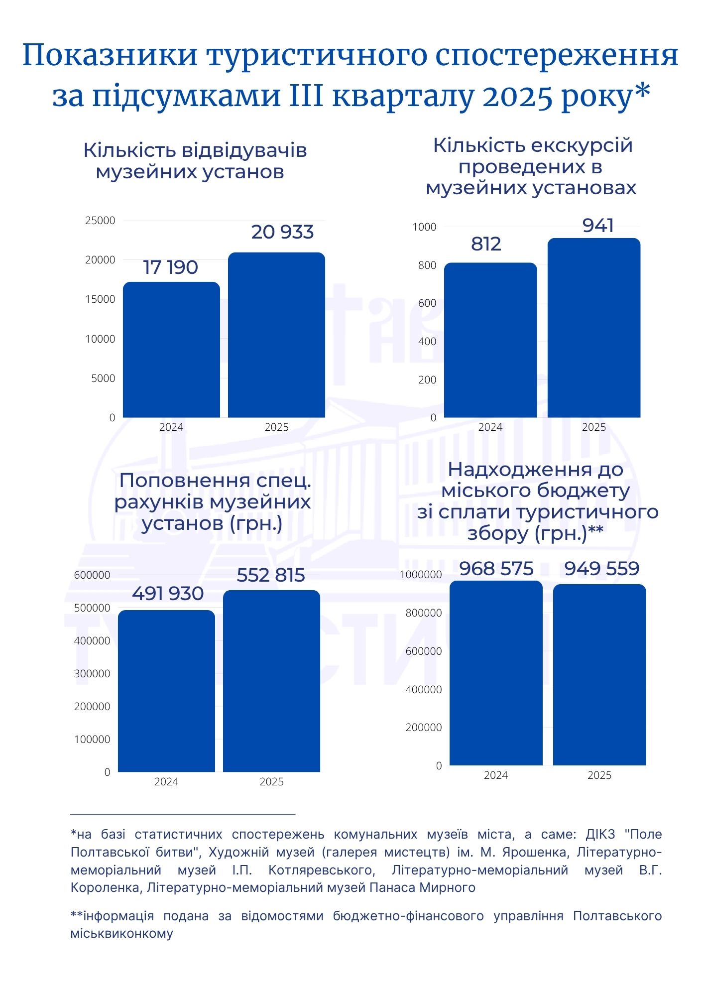 Підсумки основних туристичних статистичних спостережень за ІІІ квартал 2025 року в порівнянні з аналогічним періодом минулого року: