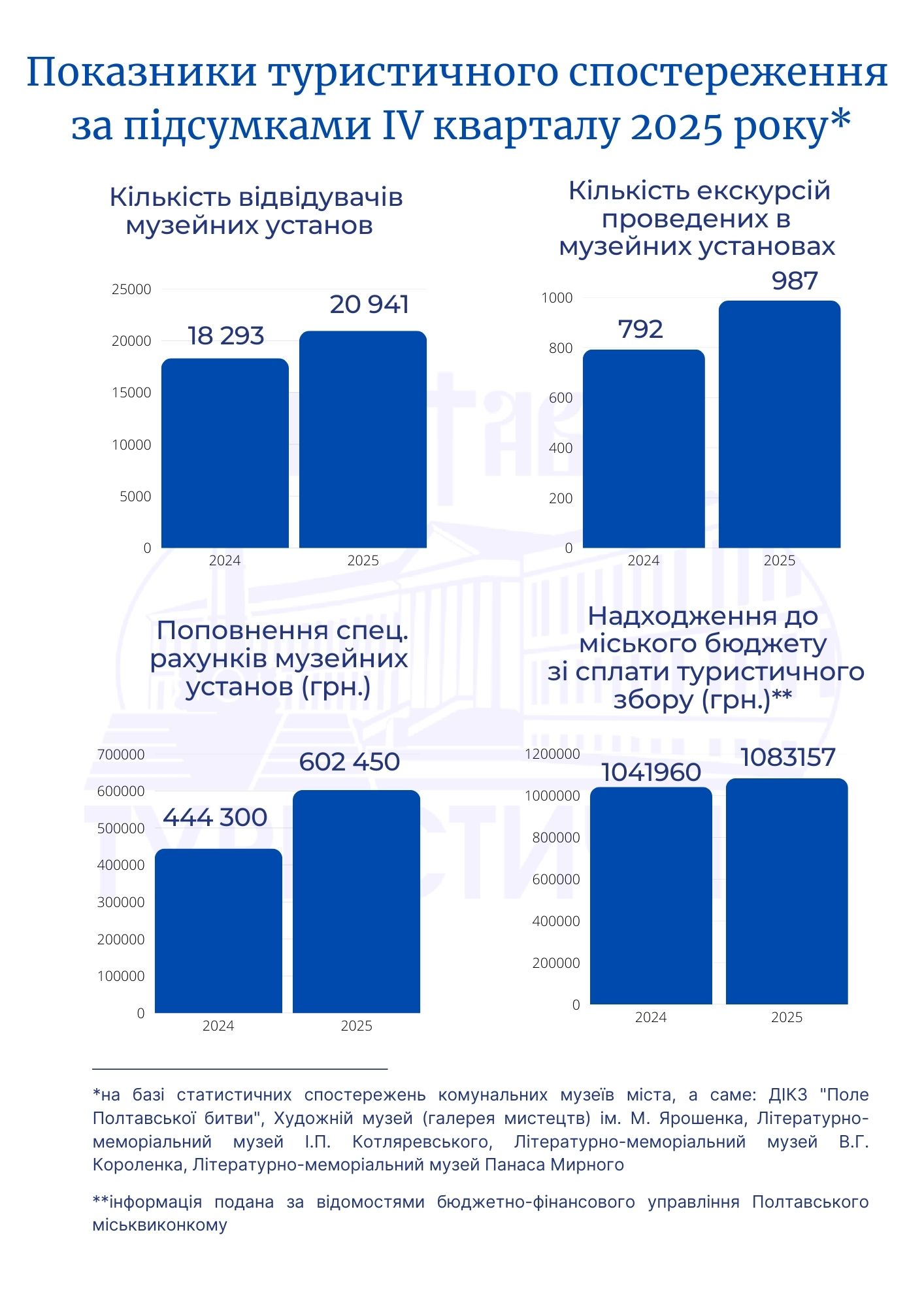 Підсумки основних туристичних статистичних спостережень за ІV квартал 2025 року в порівнянні з аналогічним періодом минулого року: